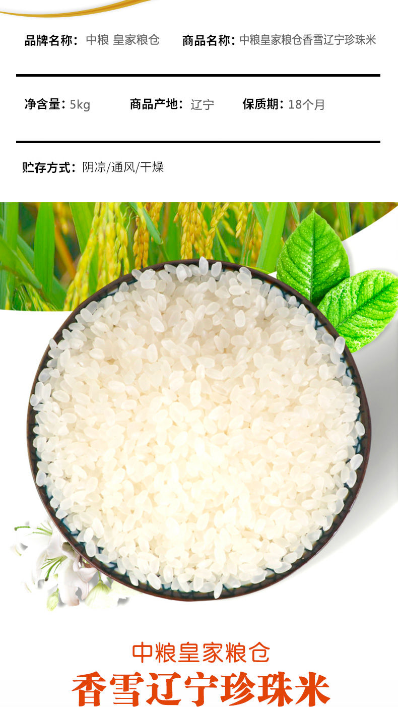 中粮皇家粮仓香雪辽宁珍珠米5kg