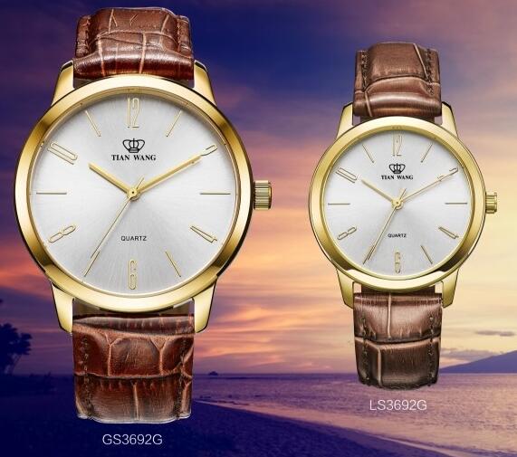 型号:GS3692G LS3692G情侣表 表体:不锈钢表壳 表壳镀金 表带:皮带 表镜:水晶玻璃 字面颜色:白色 机芯:优质进口机芯 功能:时分秒针计时 防水:30米"