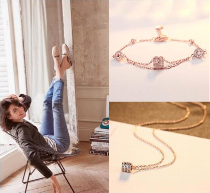 ELLE时尚百搭 璀璨夺目套组,胸间、腕间光彩随心百变,细腻雅致收放自如,采用镀姥玫瑰金工艺镶嵌施华洛世奇元素锆石,倾情呈现气质名媛经典、高贵、闪耀。
