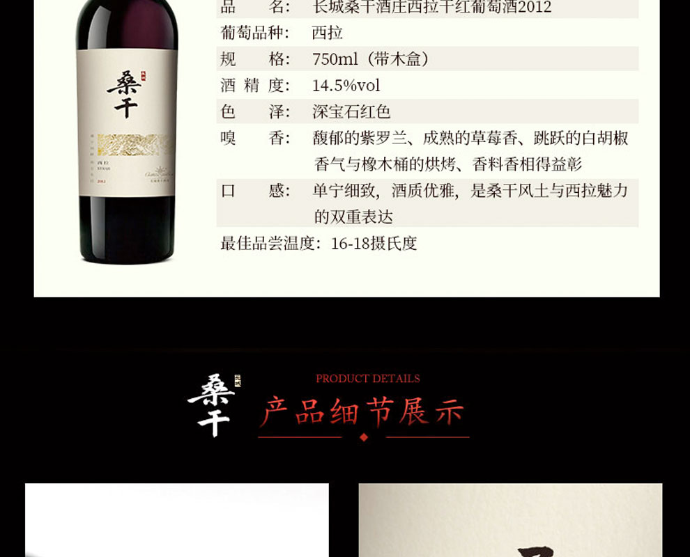 长城桑干酒庄西拉干红葡萄酒 2012