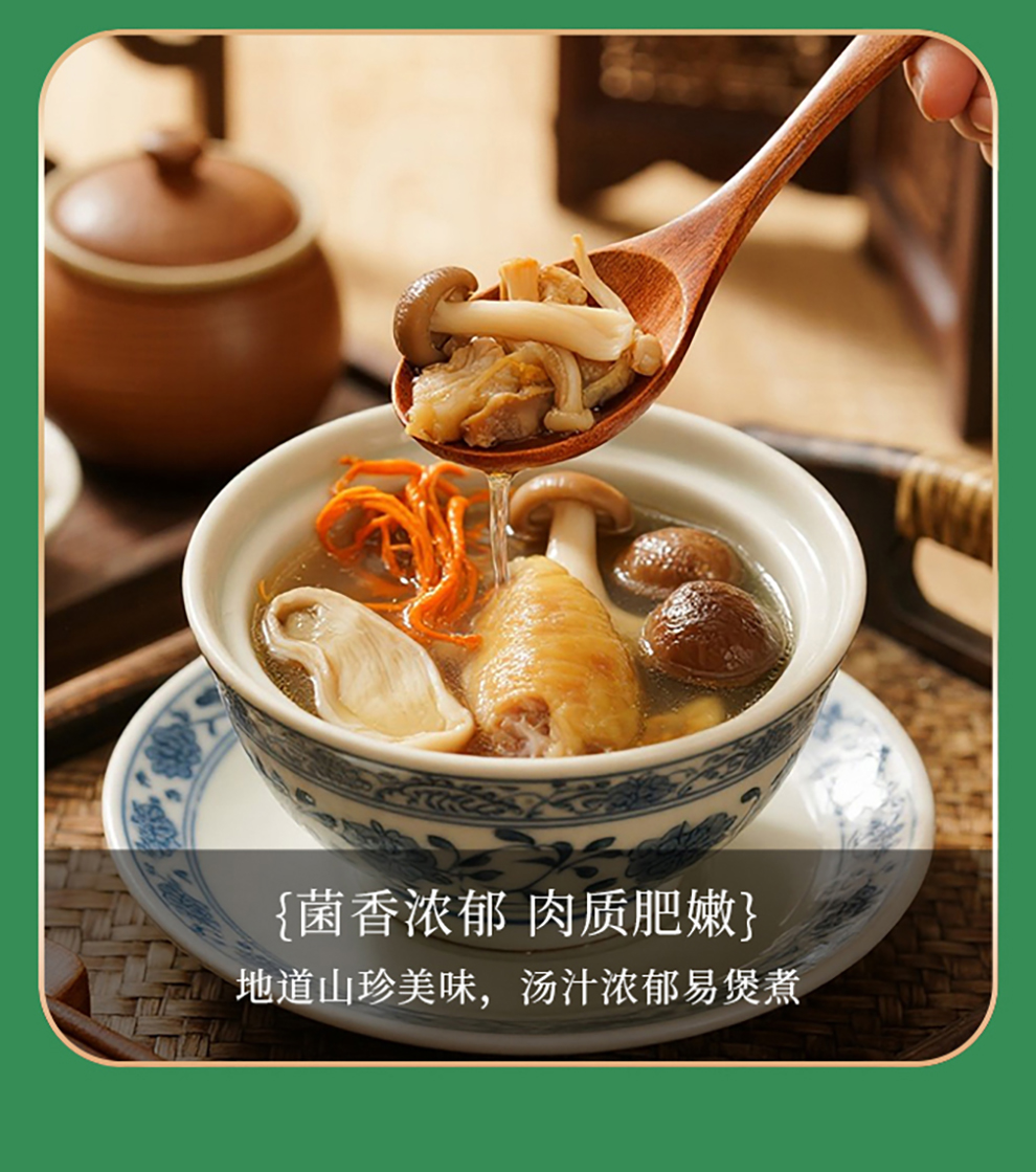 外包装就很喜人。里面满满**各种蘑菇,已经都开始吃了,煲排骨菌汤,真是美味。不错的一次购物体验。以后常来啊!
