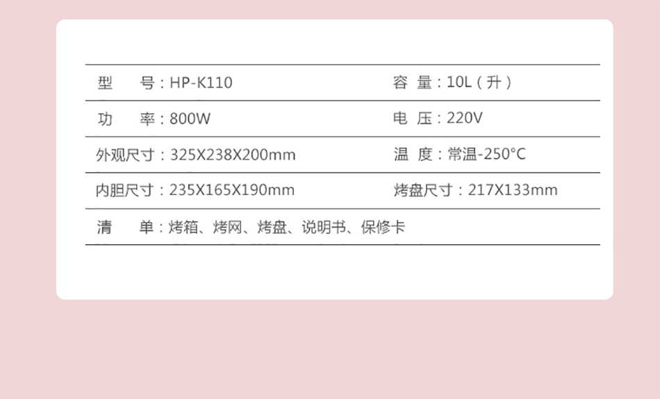 海牌电烤箱 HP-K110